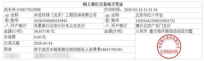 时间:2020年2月12日至2月13日员工捐款,2月14日向北京市红十字会捐款。