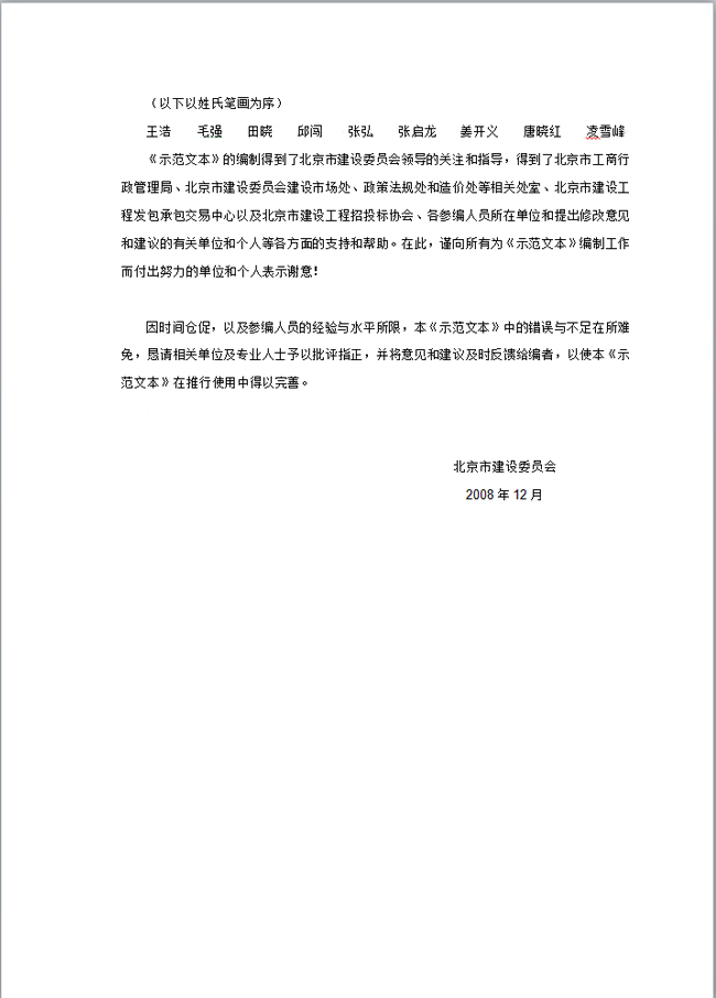 我司人员参编《北京市房屋建筑和市政基础设施工程施工招标范本》(2008年版)
